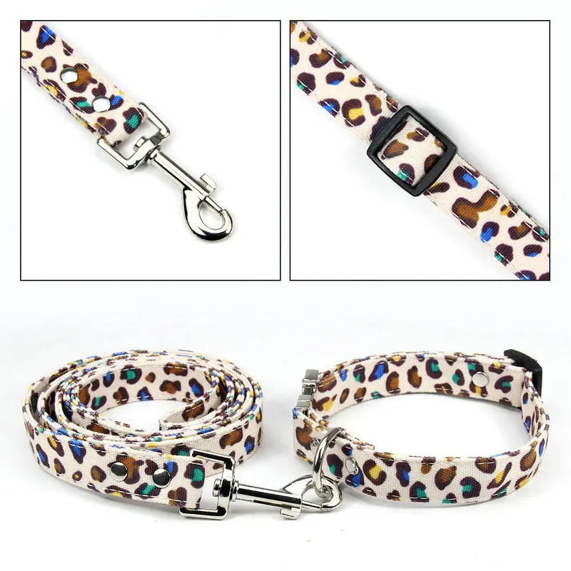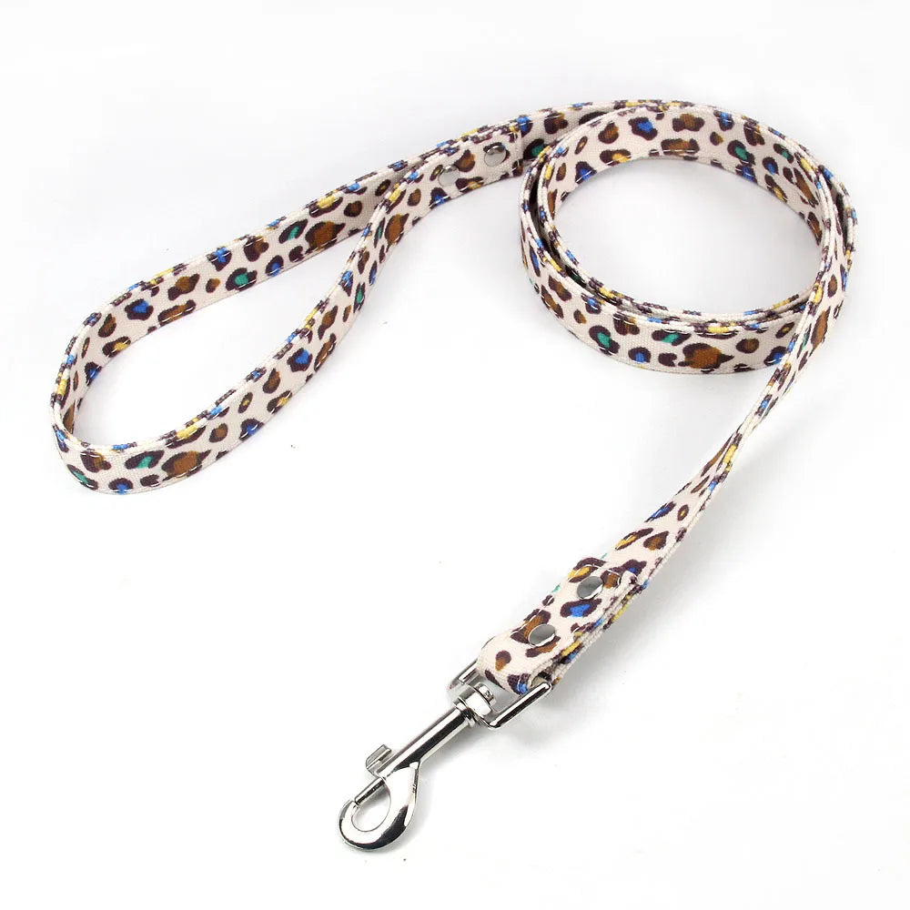This set includes both the collar and matching leash in the same colourful leopard pattern. With its simple, stylish design and durable metal buckle, it combines everyday practicality with a bold touch of fashion.
