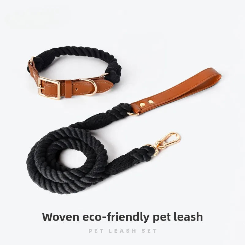 This collar comes with a matching leash made from the same recycled cotton rope and leather details. Together, they create a coordinated, eco-friendly set that combines comfort, durability, and timeless style for your daily walks.