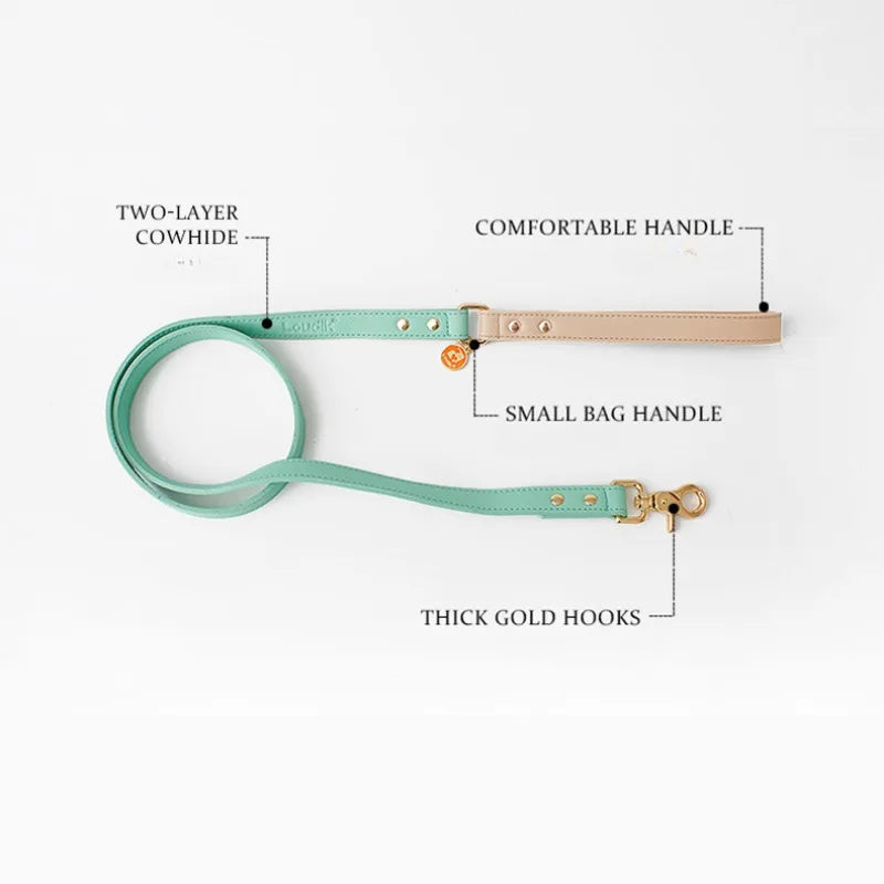 The Beverly set stands out with its vibrant mix of blue, green, and pink tones, a fun, confident look that brings color and personality to every walk. Designed with a golden metal buckle, it adds a touch of luxury to your pet’s everyday style.